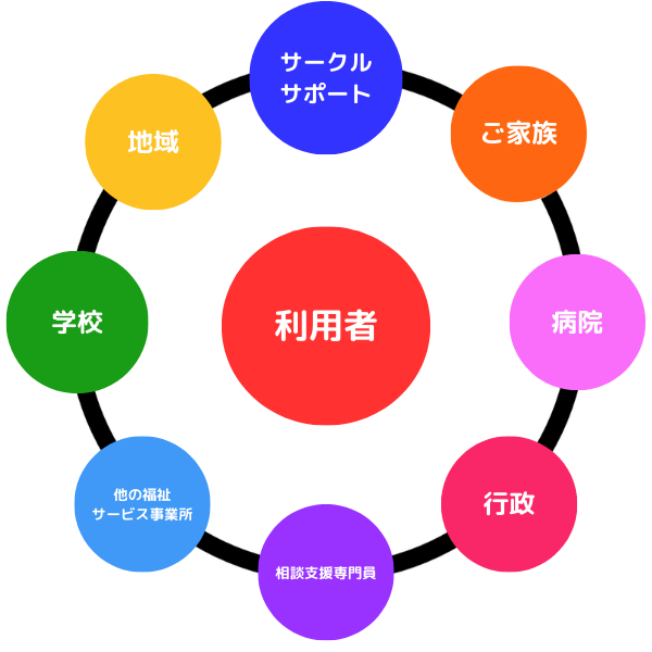 病院、相談支援事業所、行政福祉課などたくさんの方々の関わりで